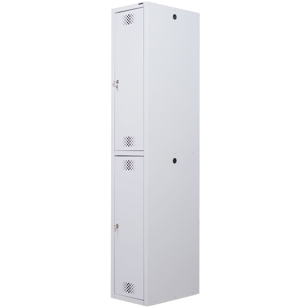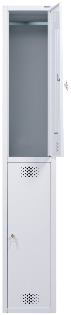 • опции: комплектация замком (вместо ключевого замка устанавливается бесключевой замок с устройством под навесной замок); скамья-подставка под шкаф; окраска дверей в другие цвета из каталога RAL (стандартный цвет светло-серый RAL 7035);