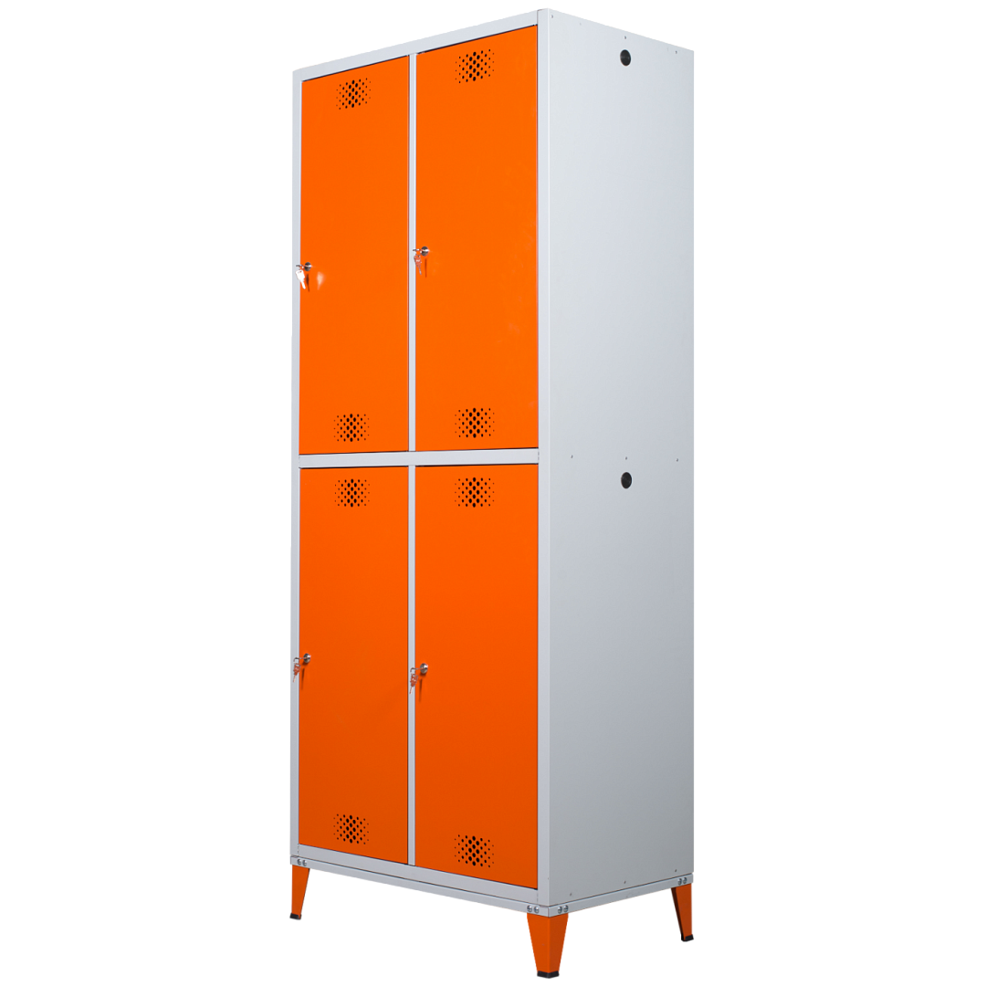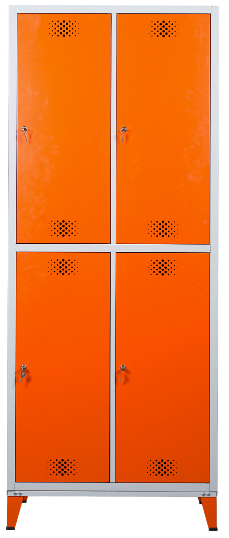 - опции: комплектация замком (вместо ключевого замка устанавливается бесключевой замок с устройством под навесной замок); скамья-подставка под шкаф; окраска дверей в другие цвета из каталога RAL (стандартный цвет светло-серый RAL 7035);