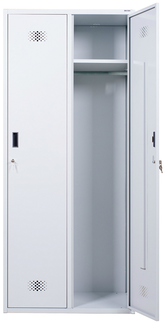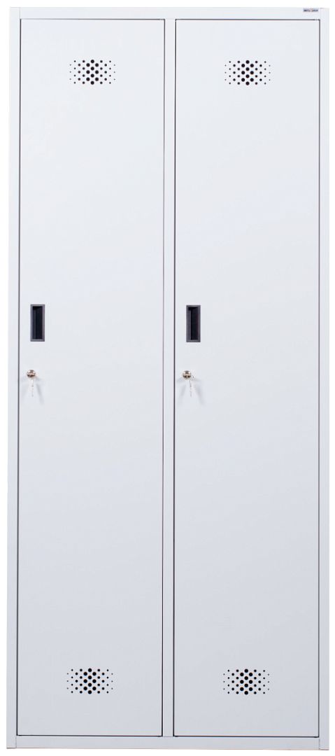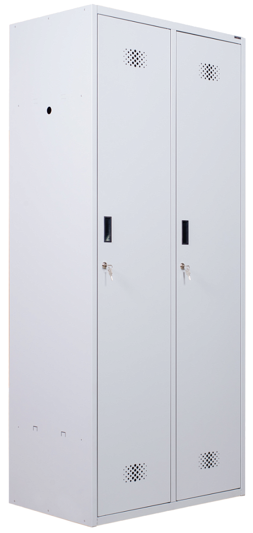 - опции: комплектация замком (вместо ключевого замка устанавливается бесключевой замок с устройством под навесной замок); полка под обувь, скамья-подставка под шкаф; окраска дверей в другие цвета из каталога RAL (стандартный цвет светло-серый RAL 7035);